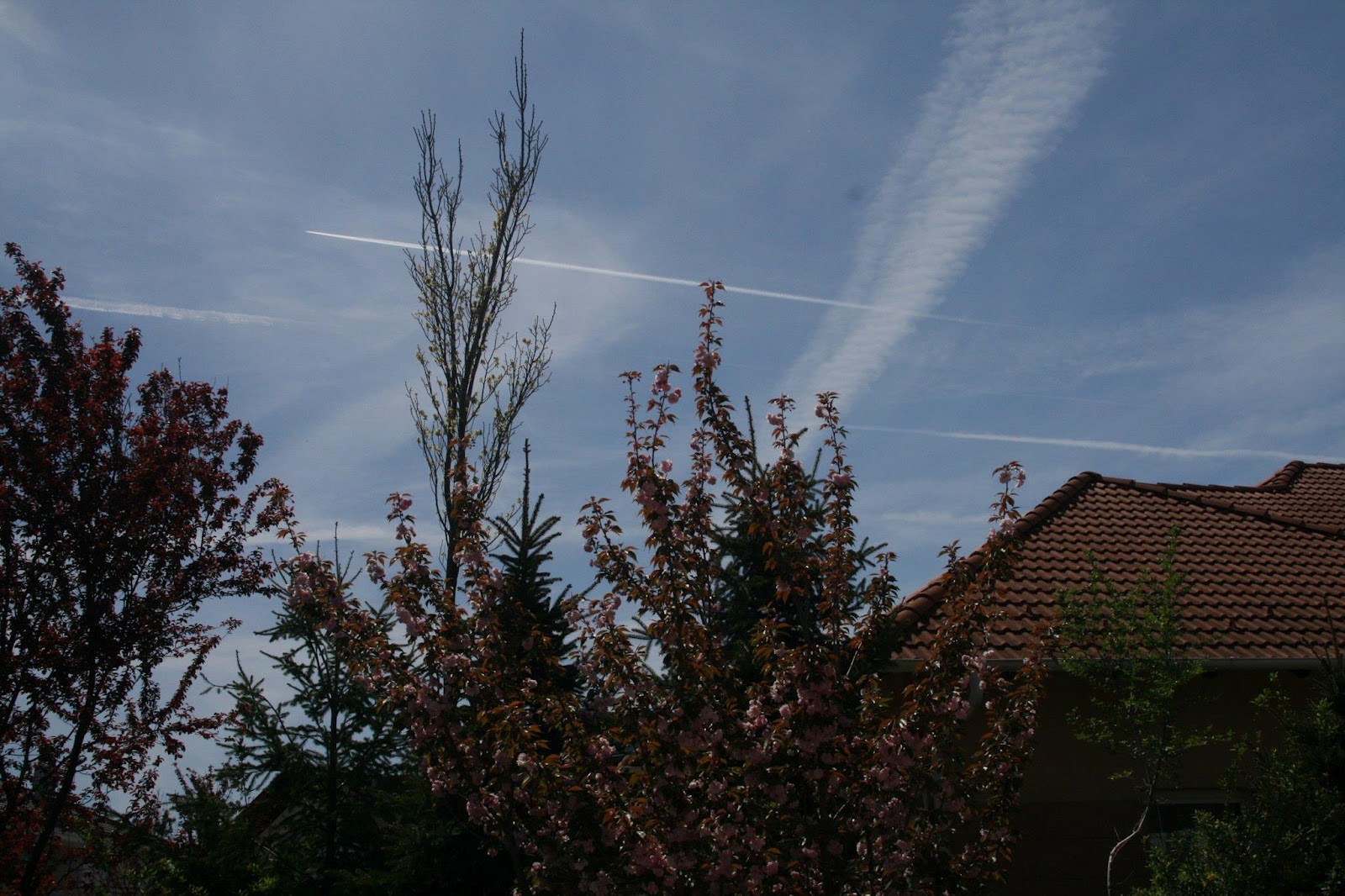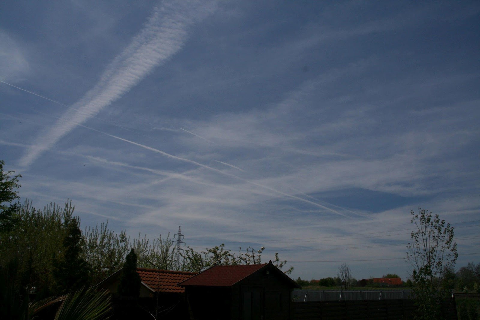 Csaba írta és fotózta Debrecenből: " Ma reggel óta Debrecen felett minimum 20 vagy 25 gépet számoltam. A teljesen tiszta égből mostanra erősen fátyolfelhős lett. Ebből jött az a gondolat, hogy tenni kellene valamit.