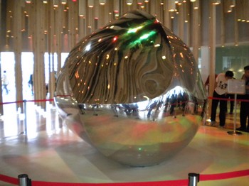Leginkább a terem közepén felállított, három méter magas krómacél gömböcöt kifogásolta a feltalálók nevében Vedres András és helyszíni tudósítónk is.